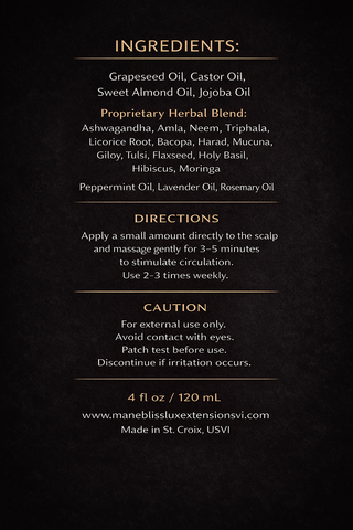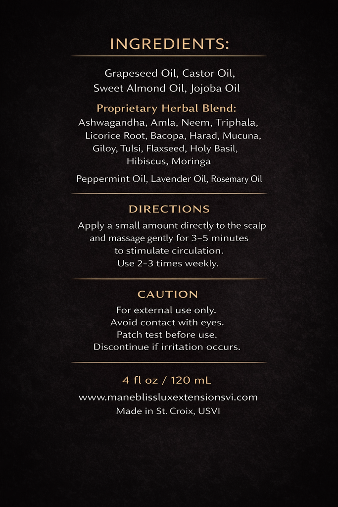 Mane Bliss Luxe Hair Oil is a lightweight, nutrient-rich growth blend designed to nourish your scalp, strengthen strands, and support healthy length retention.